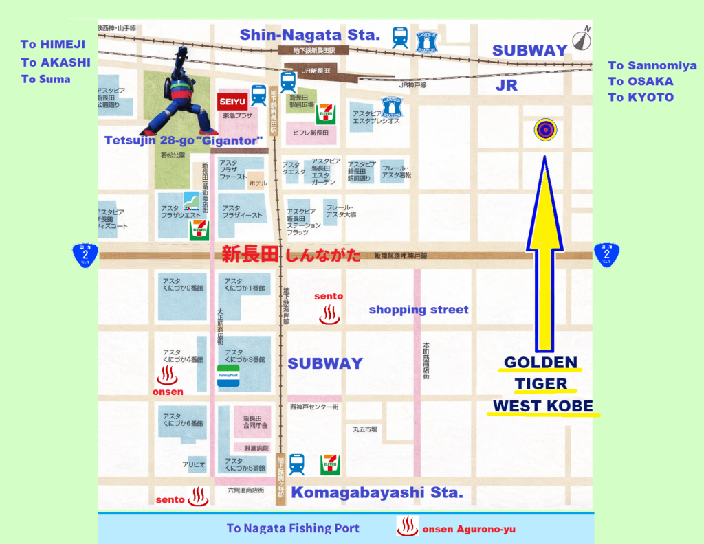 神戸空港・三宮から 電車で約12分。新長田駅東出口から 徒歩4分。